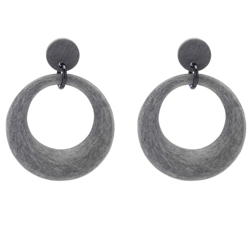 Dark gray matt horn earring on post. Buffalo horn is a natural material, each item has a unique character and may vary from image.