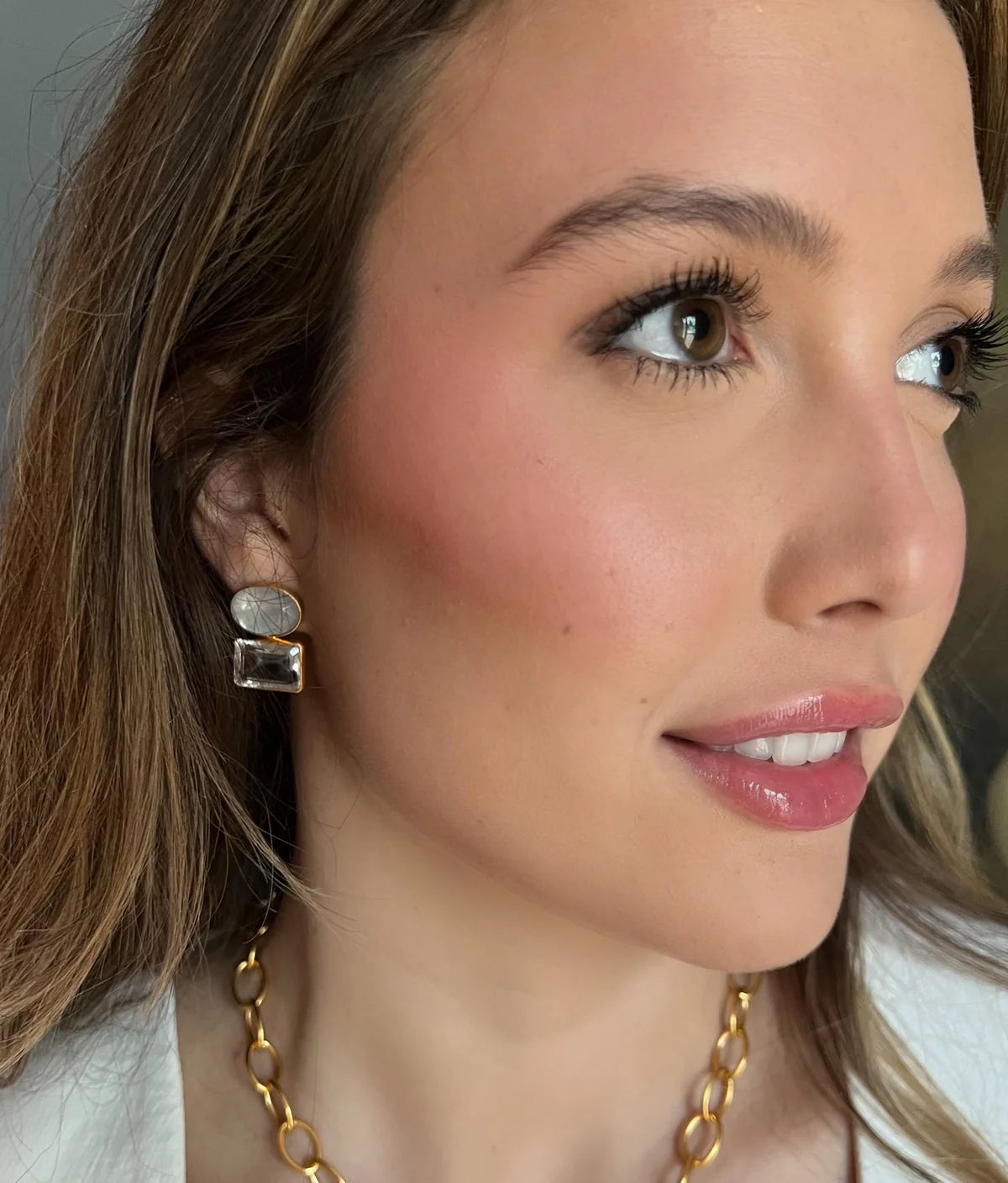 MOTHER OF PEARL AND TOPAZ EARRING