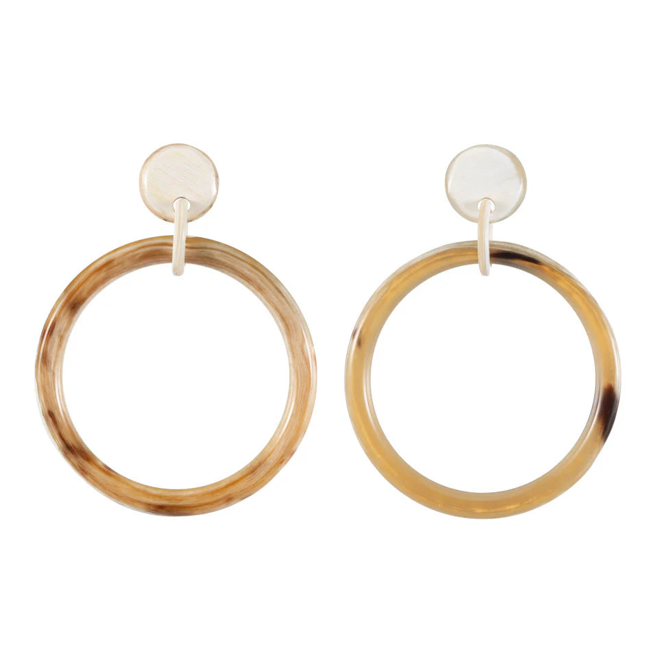 Genuine buffalo horn hoop earring dropped from a post. Buffalo horn is a natural material, each item has a unique character and may vary from image.
