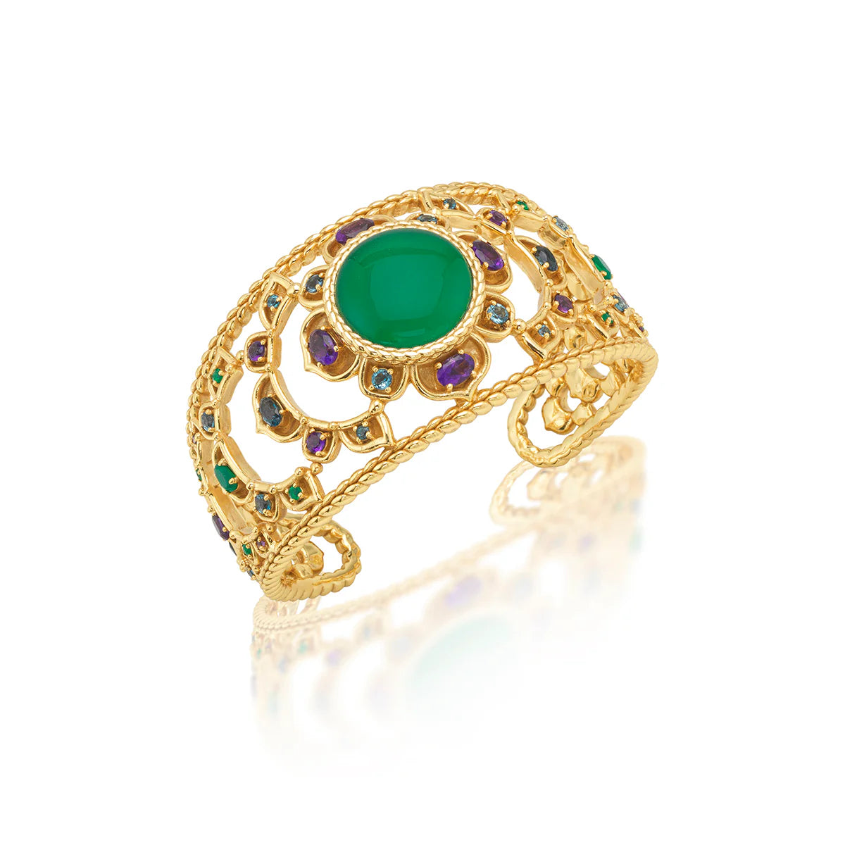 Amethyst, London Blue Topaz, Green Onyx, 18K Gold over Brass with Anti-Tarnish Coating