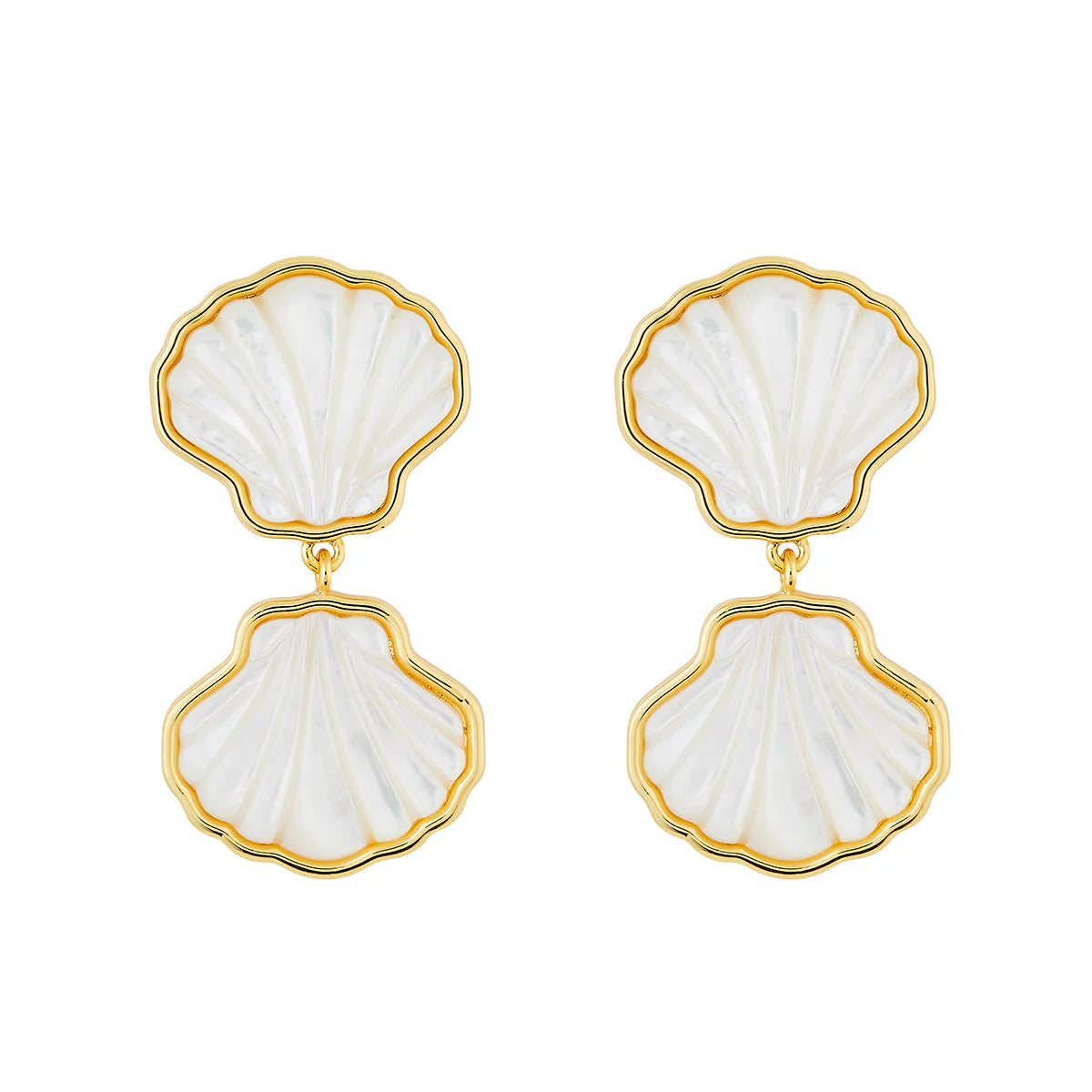 14k gold dipped Sankaty scallop shell double earring with mother of pearl